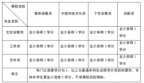 1.请所有学生按照通知要求进行选课,修满人才培养方案规定的各类公选课学分方可毕业。由于人才培养方案不同,普通本科生累计获得的公选课学分应≥6,“专转本”学生累计获得的公选课学分应≥2。