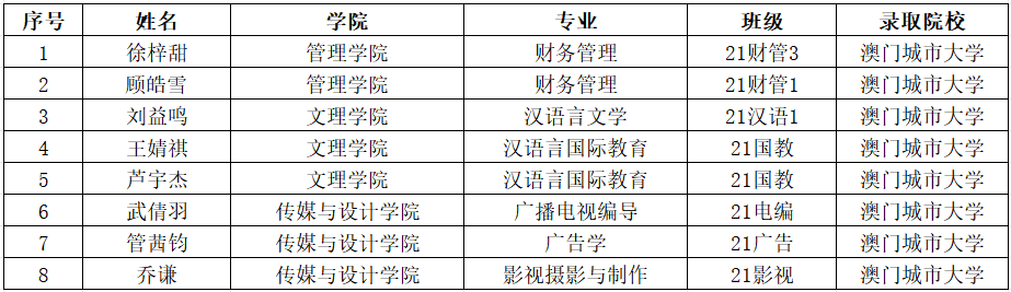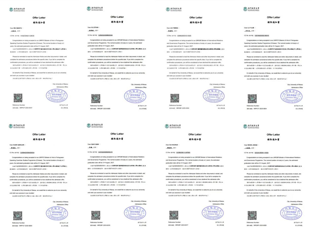 喜报!我院8名同学获得澳门城市大学2025级硕士研究生录取通知书